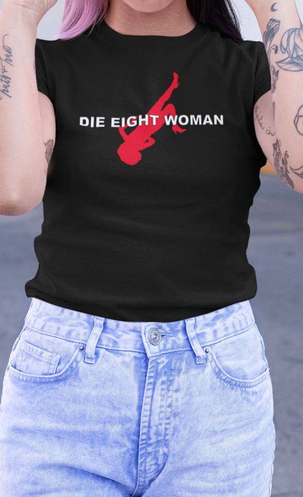 香港人不會不明白甚麼是 Die Eight Woman 吧!是,這就是死八婆的意思。這個設計也是我們 Kongish 系列的一部份,就是只有香港人才會明白的英語。而 Die Eight Woman 這三個字就是「死」、「八」、「婆」三個中文字的直譯過來的結果。